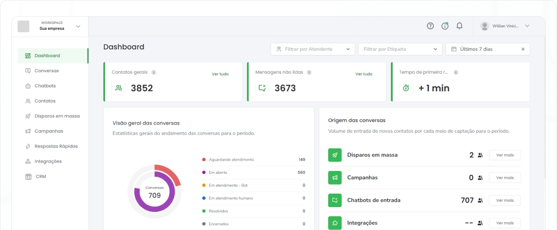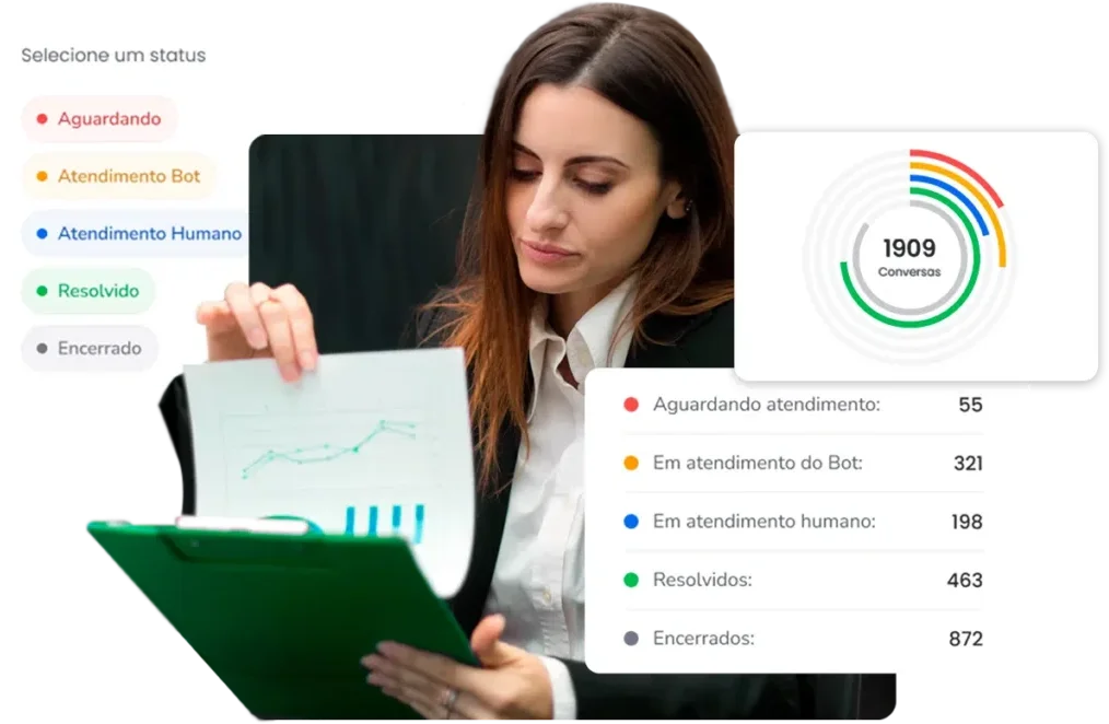 Centralize informações e acompanhe o desempenho do seu atendimento com painéis e relatórios completos, permitindo ajustes rápidos e eficientes.