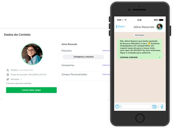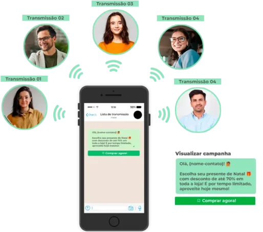 Alcance toda a sua base de contatos com mensagens de marketing personalizadas e de alta conversão. Engaje seu público, promova seus produtos e anuncie promoções com a facilidade de um clique.