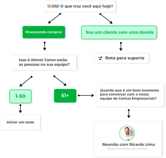 Crie chatbots em instantes para responder automaticamente a perguntas frequentes, aumentando a satisfação do cliente e otimizando o tempo da sua equipe. E lembre-se, intervenção humana está disponível a qualquer momento.