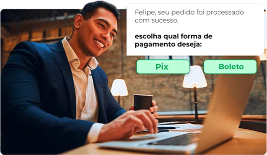 Aumente as conversões com lembretes automáticos de pagamento e atualizações de pedido via chat. Envie notificações para garantir que seus clientes completem suas compras e se mantenham informados a cada passo.
